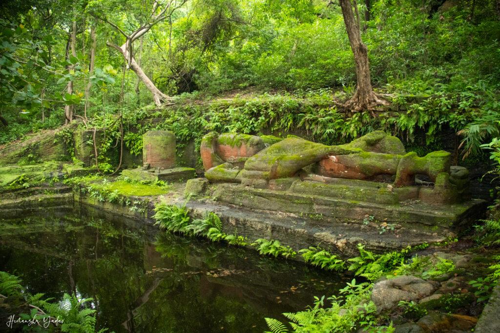 At the top of the Bandhavgarh plateau lies a huge statue of Lord Vishnu, in sleeping pose fondly known as Shesh Shaiya. The 35 feet long statue is carved out of single piece of sandstone and dated back to 1000 AD. On the way to Shehaya you would encounter courtroom, horse stable and historic caves from Kalchuri Dynasty.